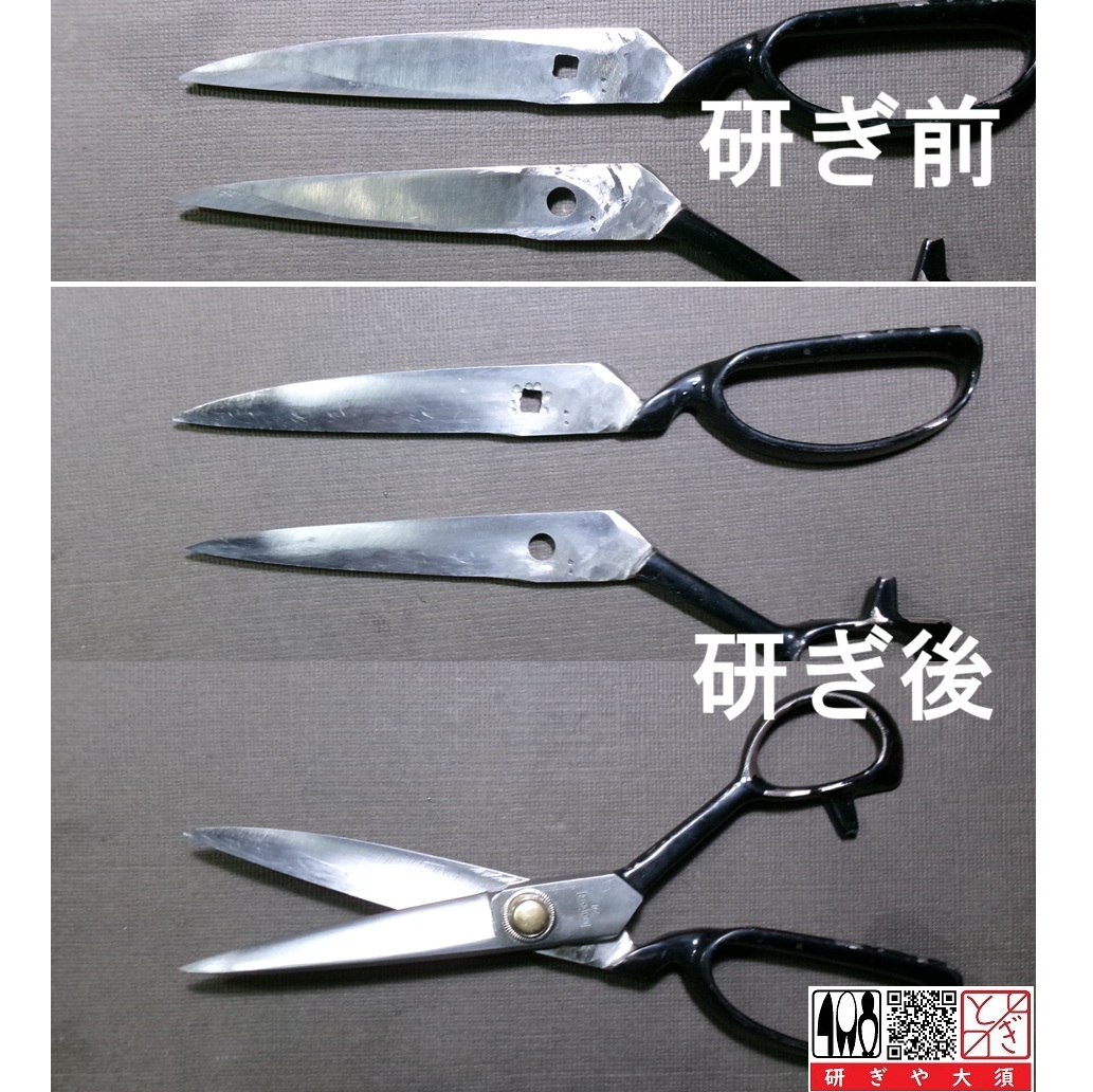 HOME > 研ぎ:裁ち鋏 裁縫道具 > 研ぎ:裁ち鋏 裁縫道具 ダメ!絶対!:裏のつぶされた裁ち鋏の研ぎ 2025年12月16日 裁ち鋏 器械で裏スキが見事なほどつぶされてしまっていました。 裏をスキ直すのは面倒です。それ以上に、鋼が薄くなるのが、とてももったいないです。 表も形を直すので、その分も追加料金が掛かります。 研ぎ料金は、2,800円(その他の5等級)。 Twitter Share Pocket Hatena LINE コピーする -研ぎ:裁ち鋏 裁縫道具