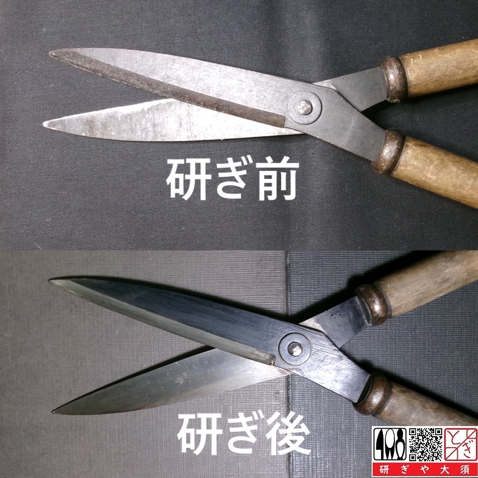 HOME > 研ぎ:大工道具、花卉 その他 > 研ぎ:大工道具、花卉 その他 刈込鋏の研ぎ 2025年8月20日 刈込鋏 街中に店を構えている割には、こういうのもやって来ます。 農機具やなんかを主にやっている研ぎ屋だったらもっと手早くお値打ちに研ぐんだろうけど、ウチだと柳刃包丁なんかの合間に研ぐものだから・・・・・。 昔、師匠に「サシミ~ィ引く訳じゃなねーんだから、そんな研いでどうする~ぅ!」と言われたことを思い出しましました。 研ぎ料金は、2千円。 Twitter Share Pocket Hatena LINE コピーする -研ぎ:大工道具、花卉 その他