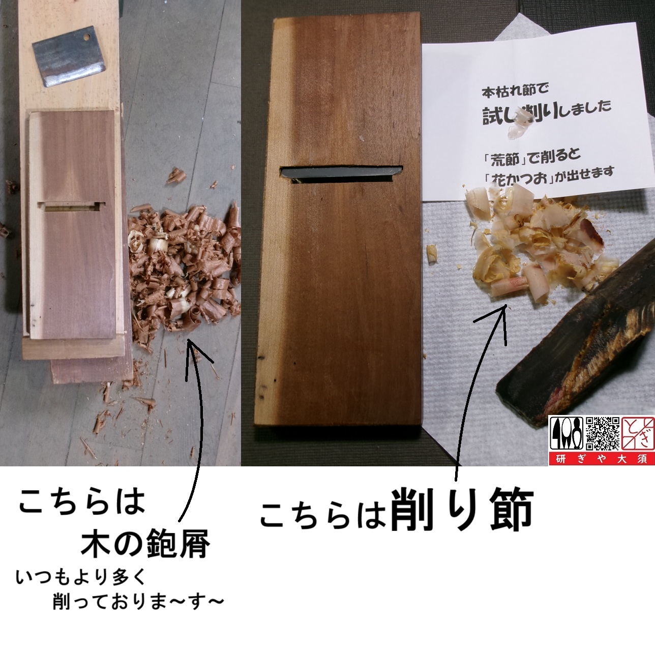 HOME > 研ぎ:包丁 調理用具 > 研ぎ:包丁 調理用具 鰹節削り鉋の研ぎ 2025年11月24日 鰹節削り鉋 桜か何か柔らかい材木で台が作ってあります。柔らかいだけに刃口付近のへこみがひどくなっていました。台下端を直すために、いつもより多く削りました。 研ぎ料金は、1,400円:料理用具の1等級。 Twitter Share Pocket Hatena LINE コピーする -研ぎ:包丁 調理用具